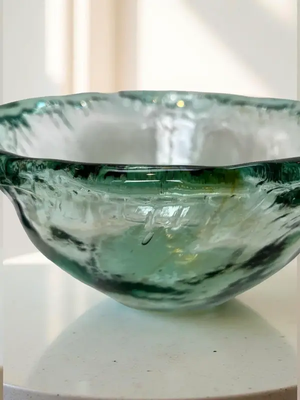Handgeblazen kom van gerecycleerd glas