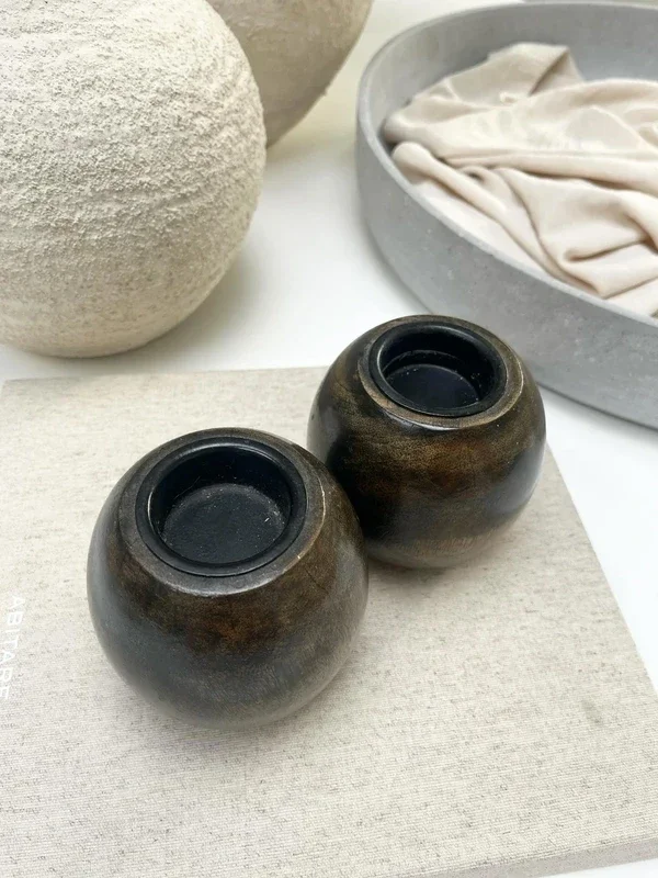 Set - 2 theelichthouders hout