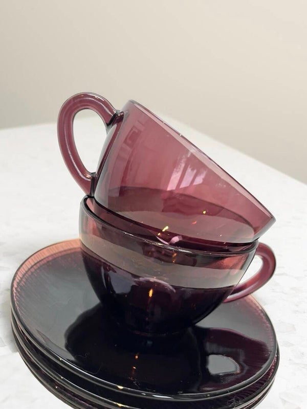 Set - 2 kopjes, 4 bordjes Ametist glass