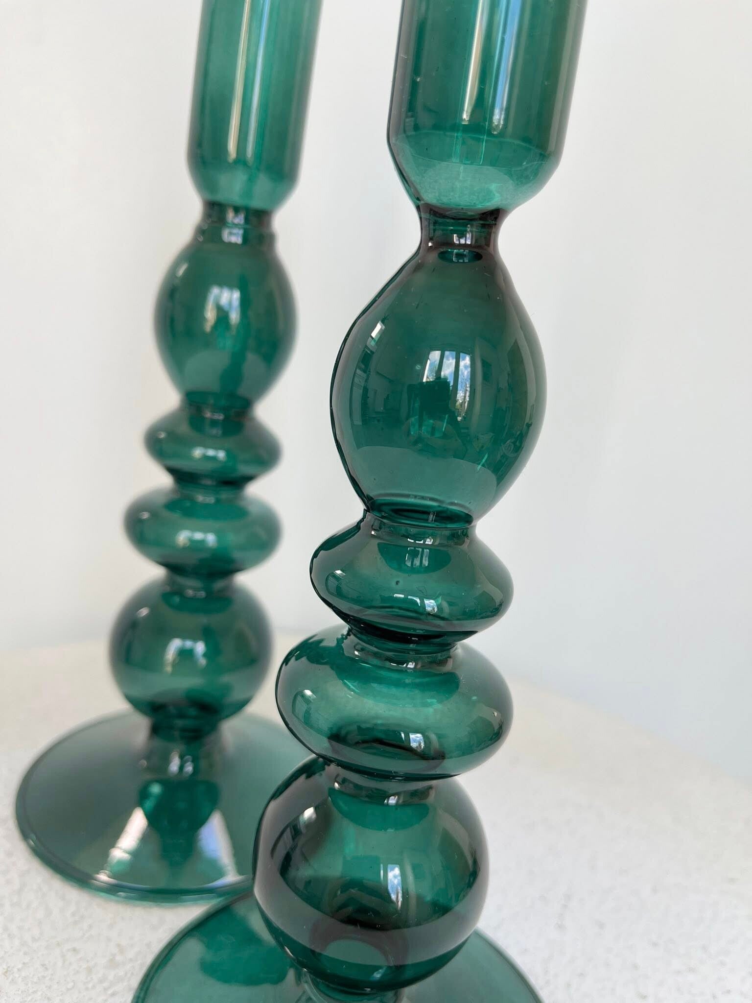 Set - 2 kandelaars ultra fijn glas groen